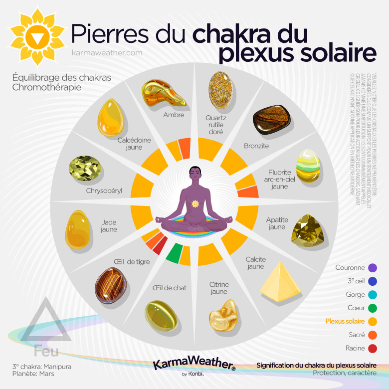 Lithothérapie chakra: pierres précieuses, gemmes et cristaux de guérison du chakra du plexus solaire